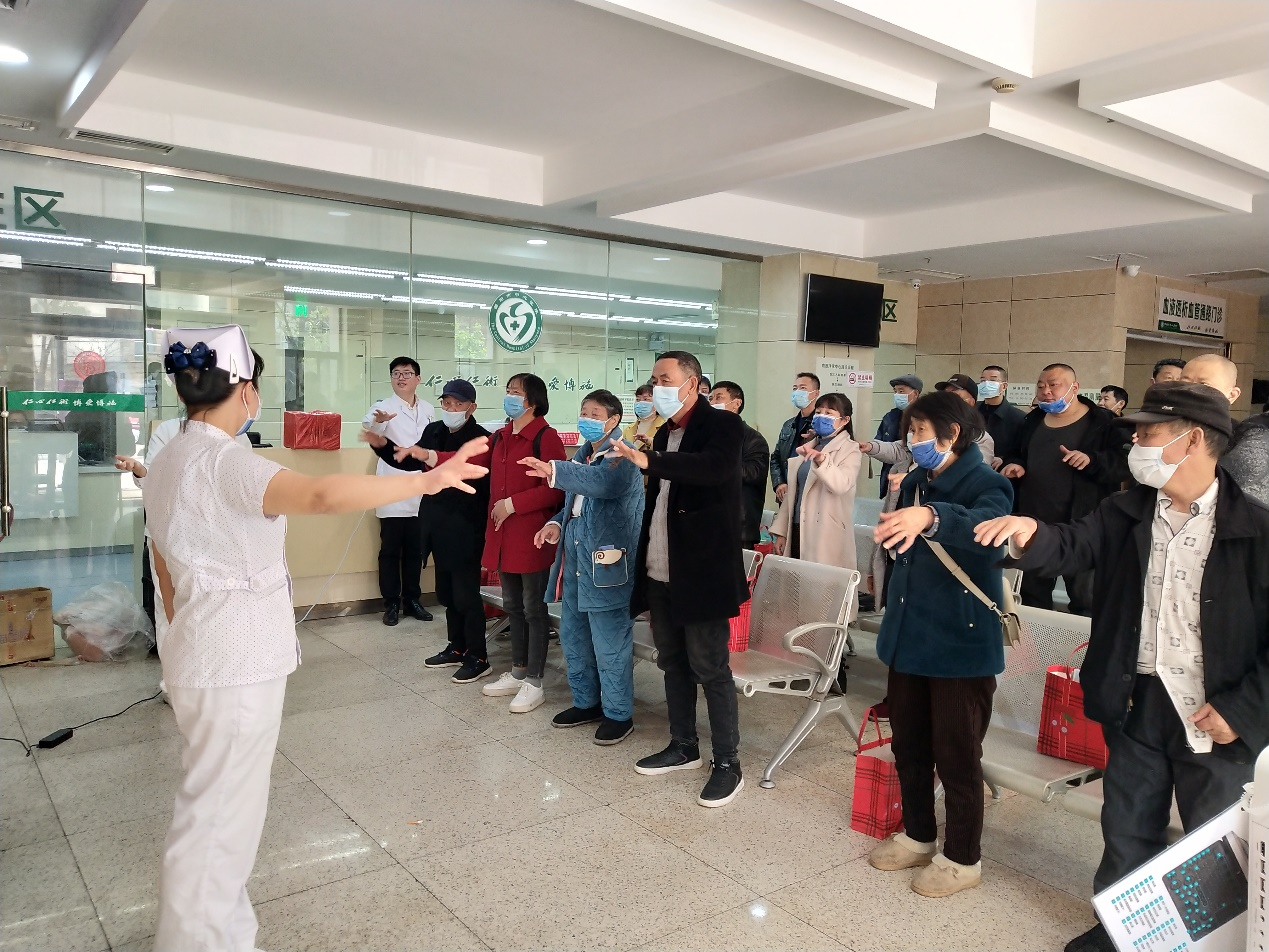 在血透分会场,王小艳书记带领支部党员与肾内科医护同仁在血管通路门诊为患者免费开展了彩色B超评估内瘘的义诊活动。义诊现场,肾脏病患者们闻讯赶来,排着队有序候诊,血管通路专家杨涛主任医师、蒋强主治医师言语亲切,侧耳倾听着患者们的问题,专注地运用彩色B超评估血透患者生命线并耐心解答。义诊结束后进行专题知识讲座,首先是杨涛主任主讲的《透析营养,能量先行》,蒋强主治医师主讲的《贫血的危害是微不足道还是洪水猛兽?》,宋春莲护士长主讲的《动静脉内瘘护理》。最后由活力四射的血透专职护理团队带领大家一起进行内瘘保护操锻炼,和着动感有力的音乐节奏,将活动推向了高潮。大家纷纷表示这样的活动非常有意义,希望以后能经常开展。