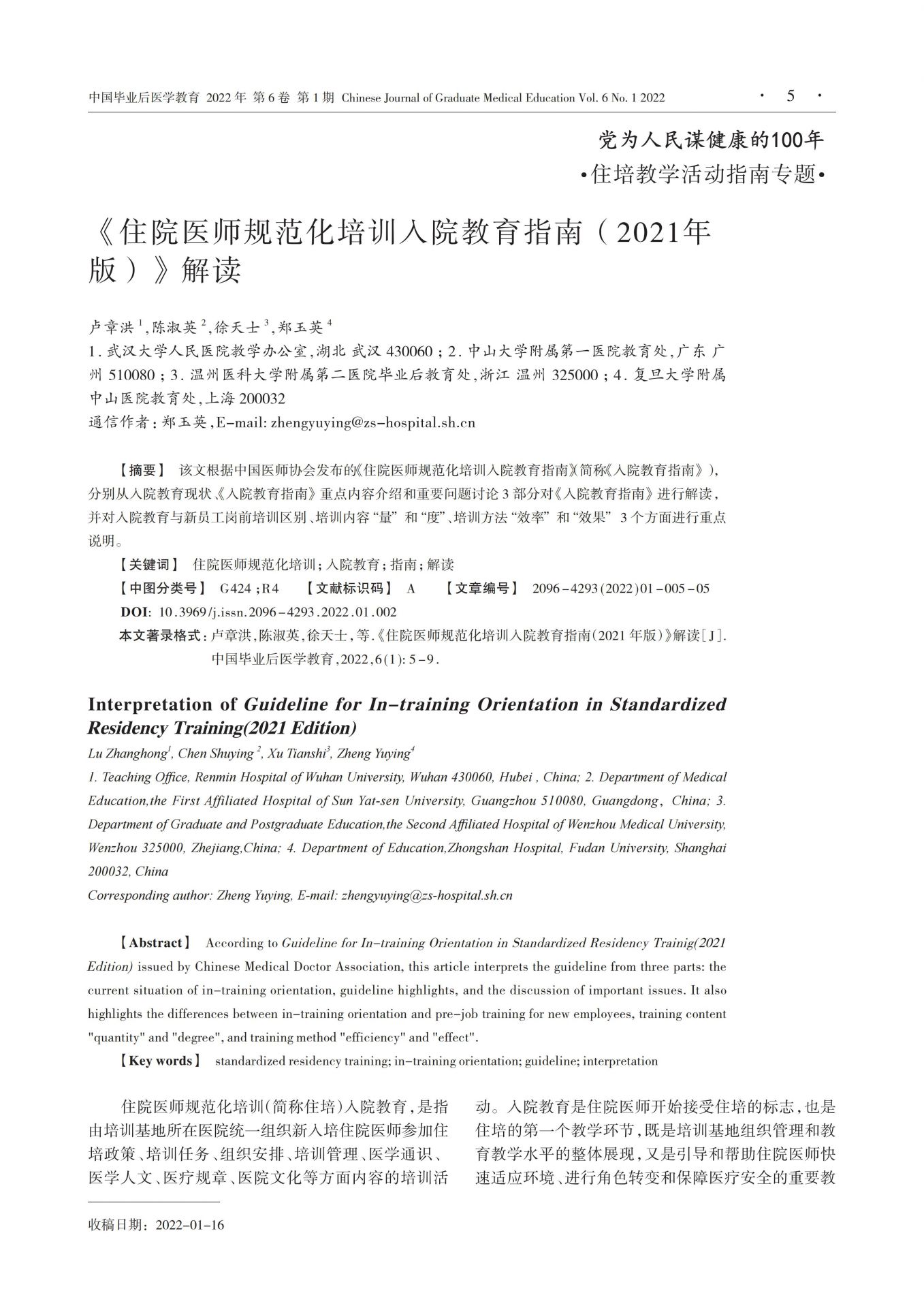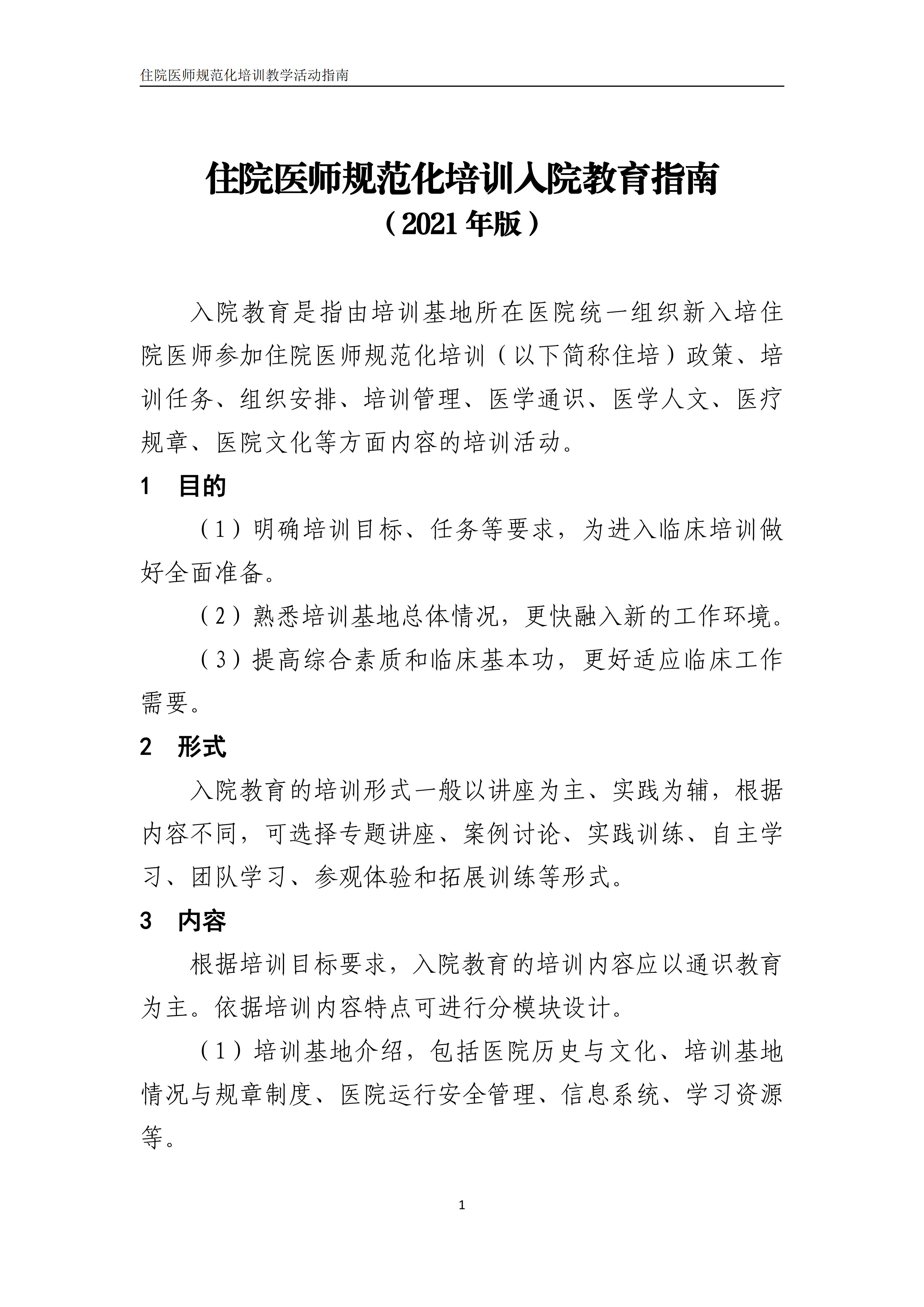 住院医师规范化培训入院教育指南(2021年版)