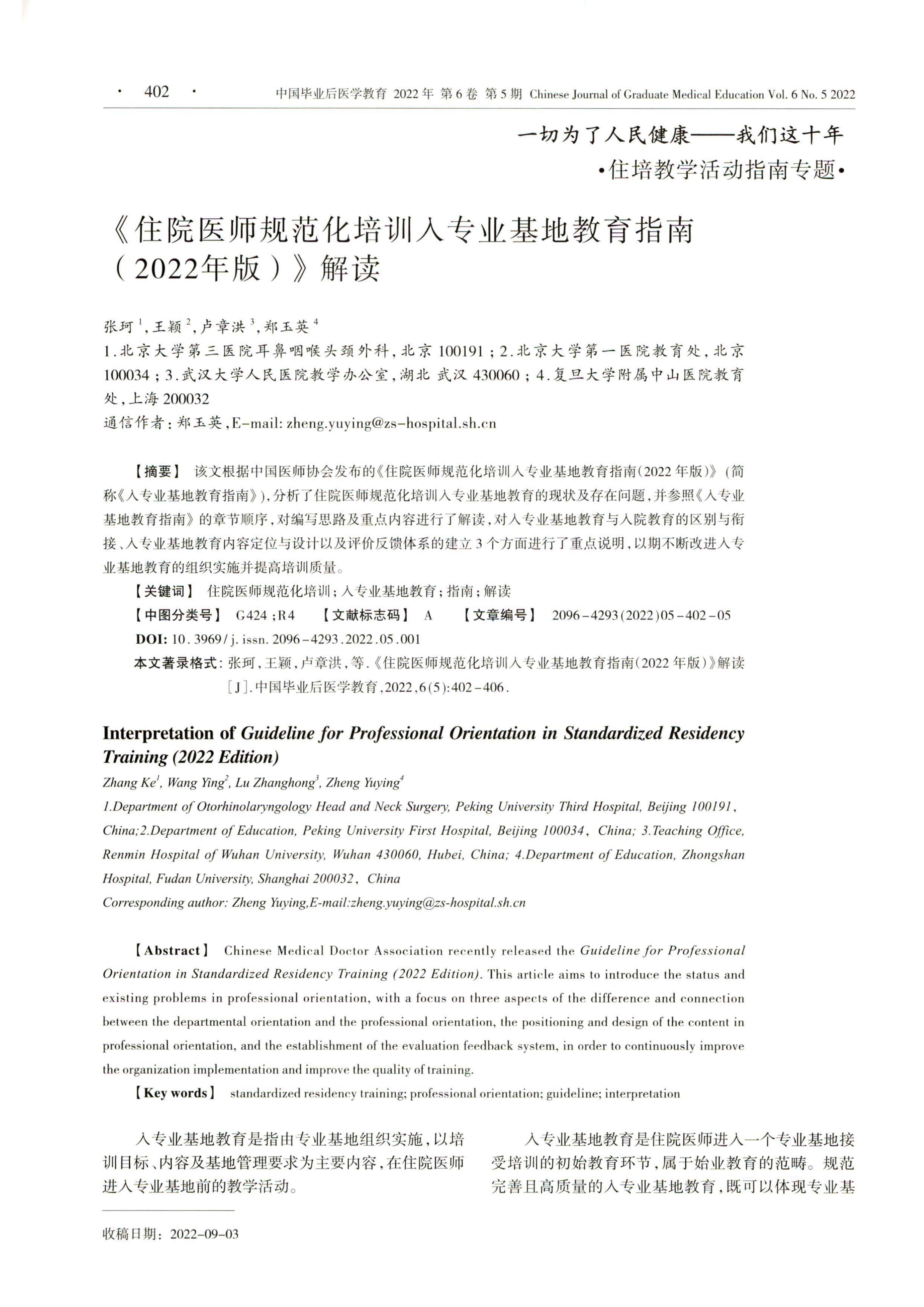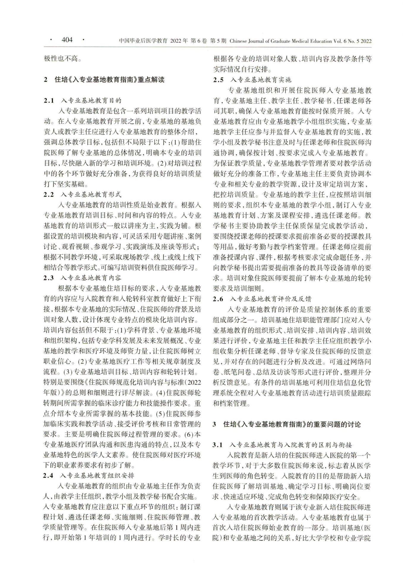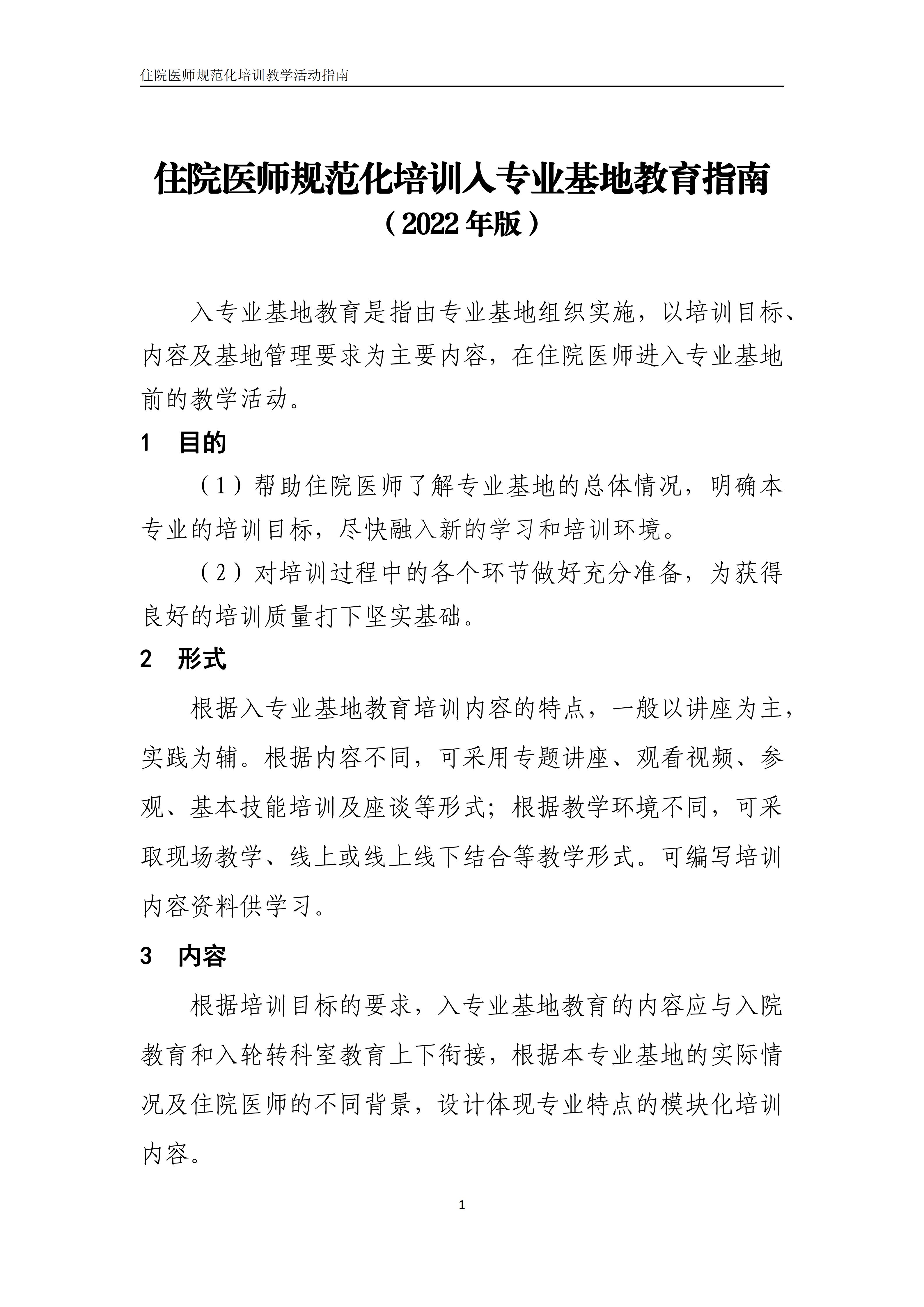 住院医师规范化培训入专业基地教育指南 (2022年版)