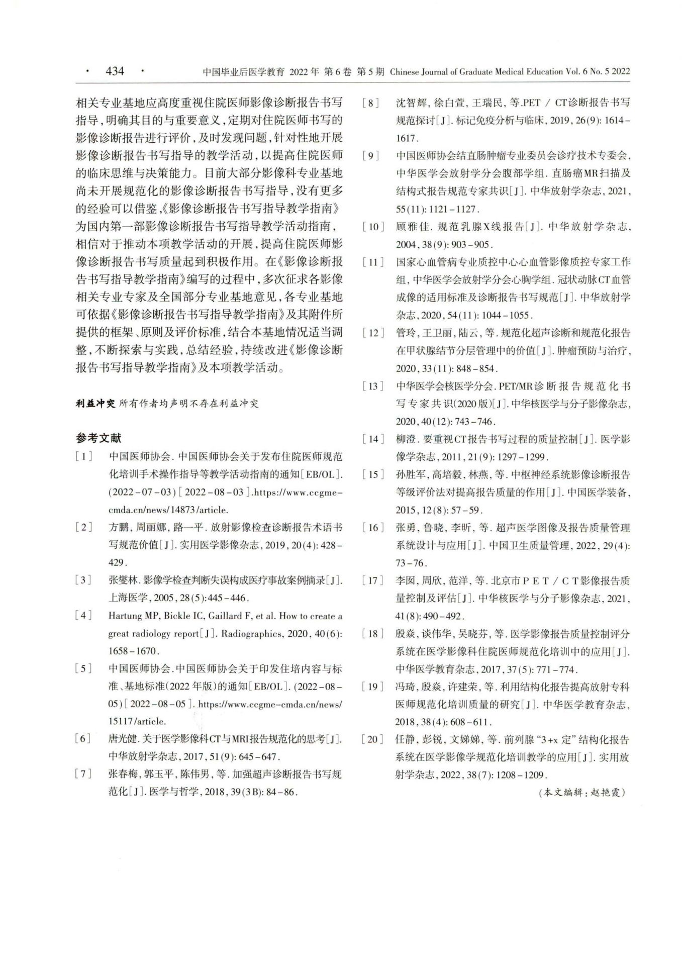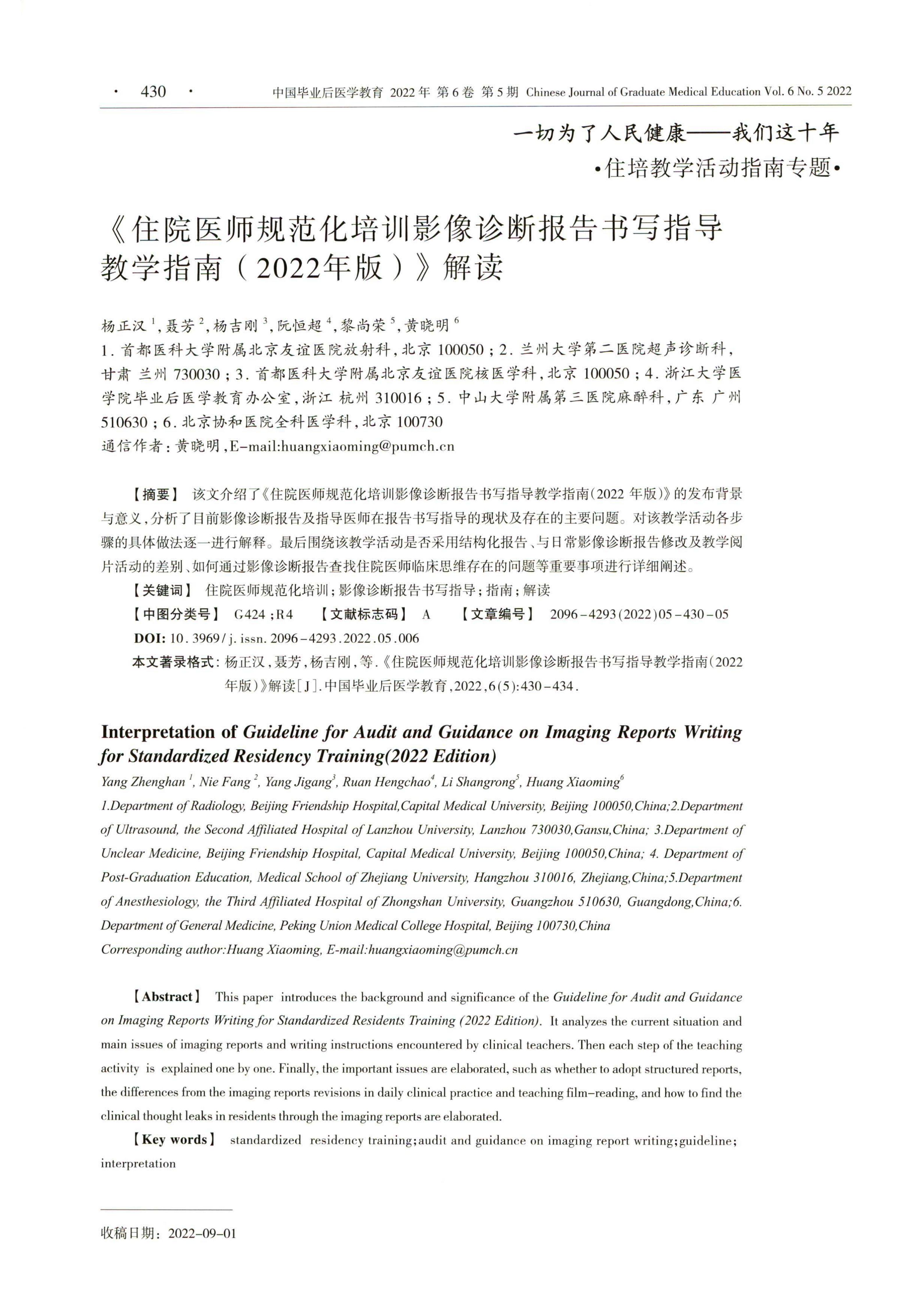 住院医师规范化培训影像诊断报告书写指导教学指南(2022年版)