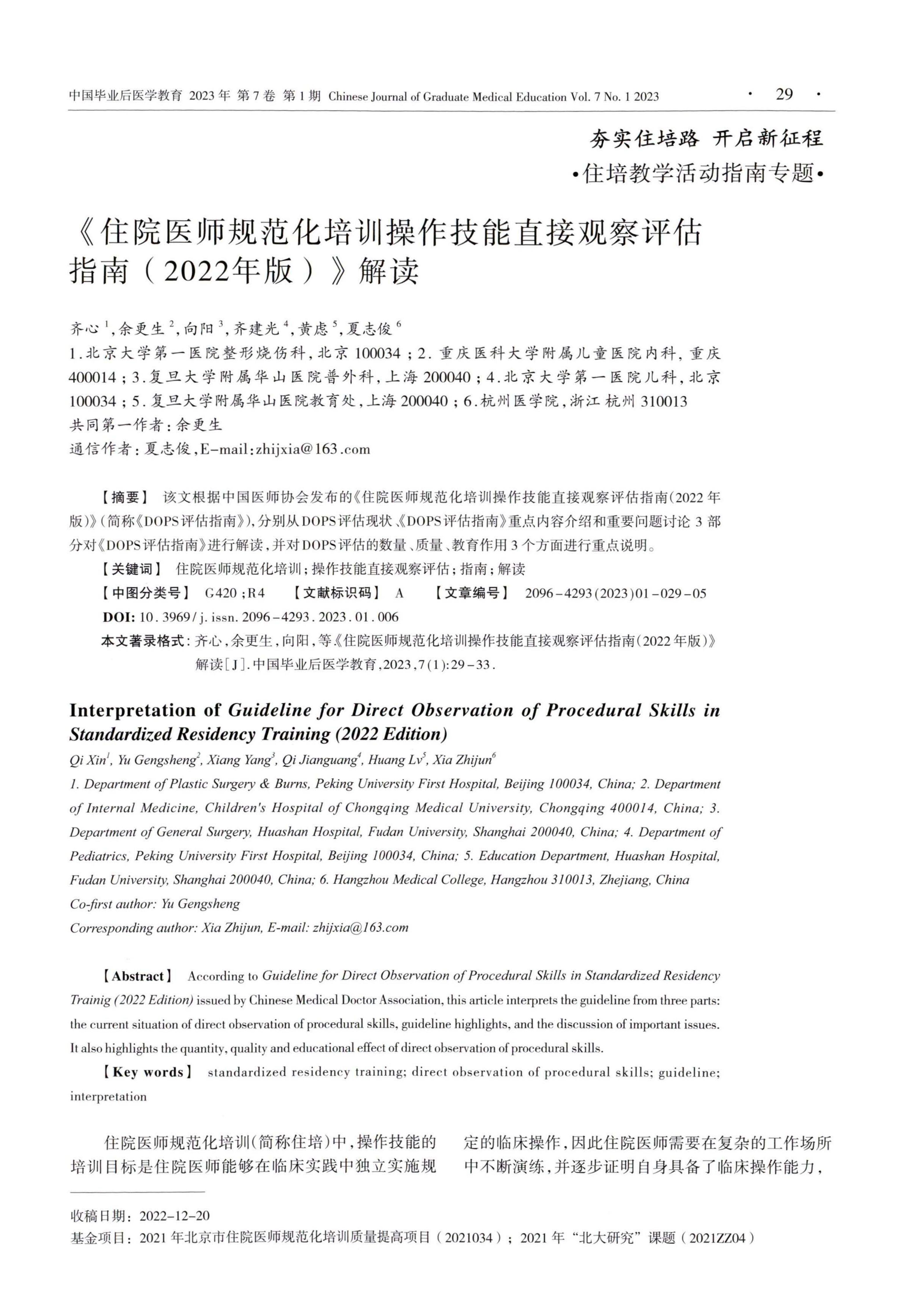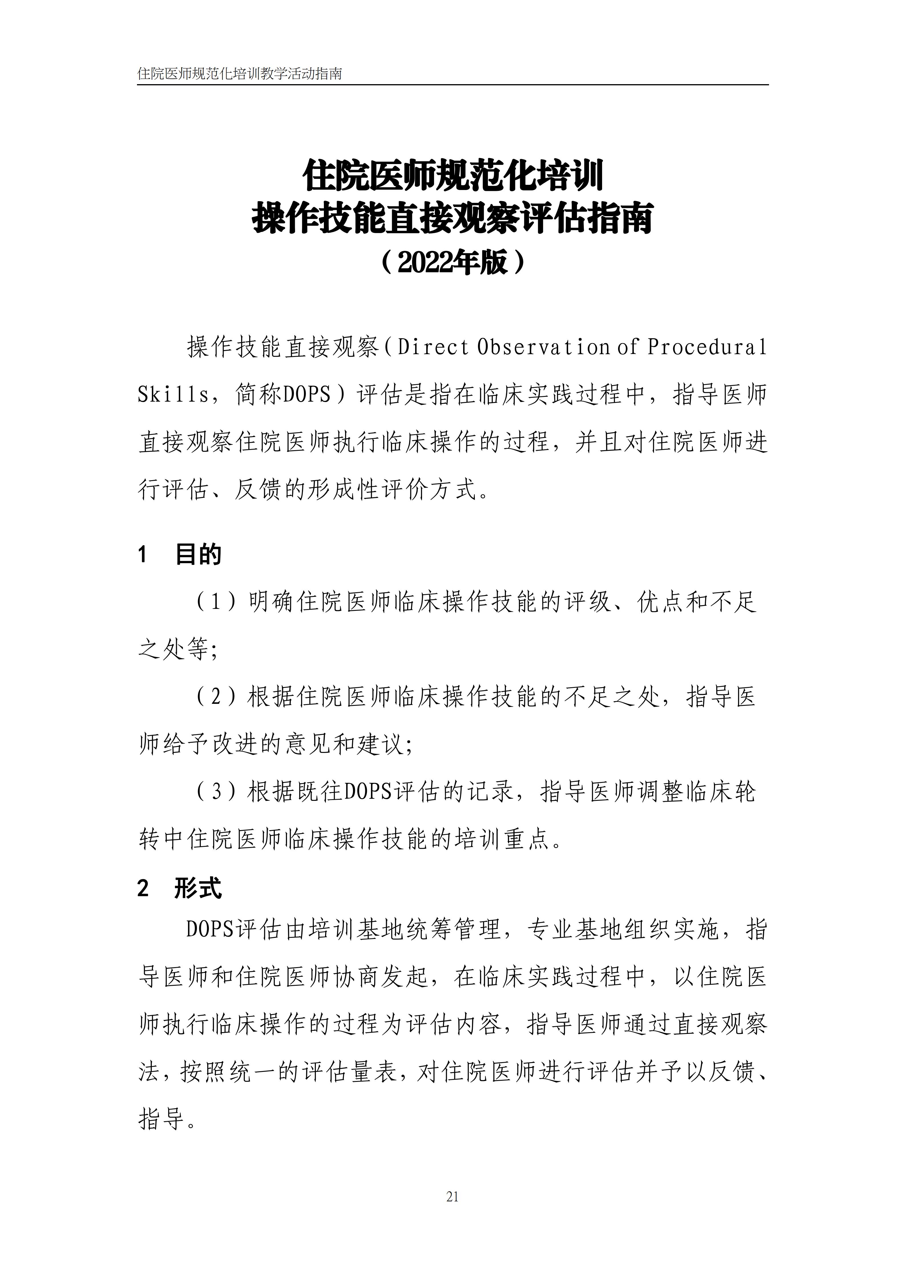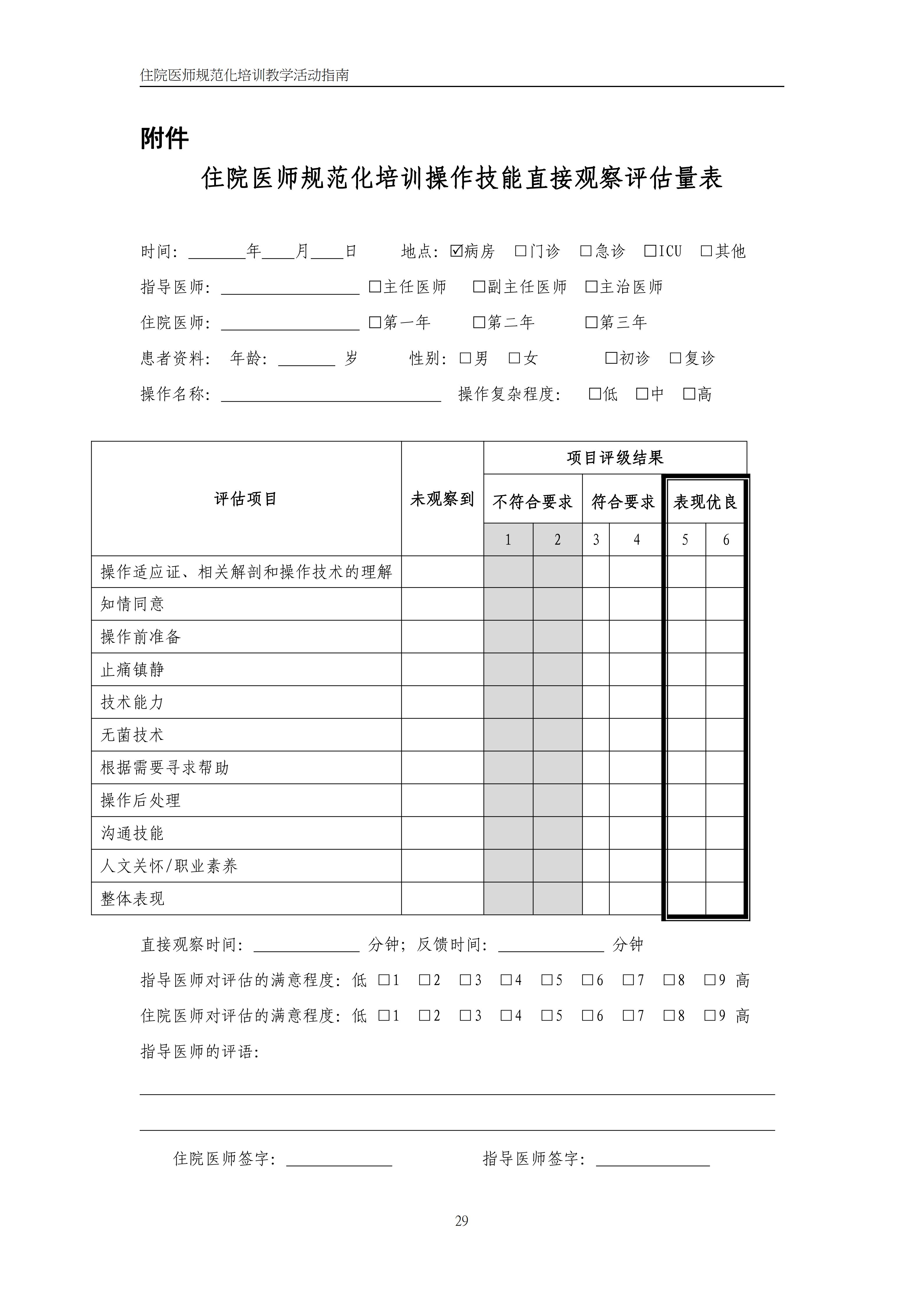 住院医师规范化培训操作技能直接观察评估指南(2022年版)
