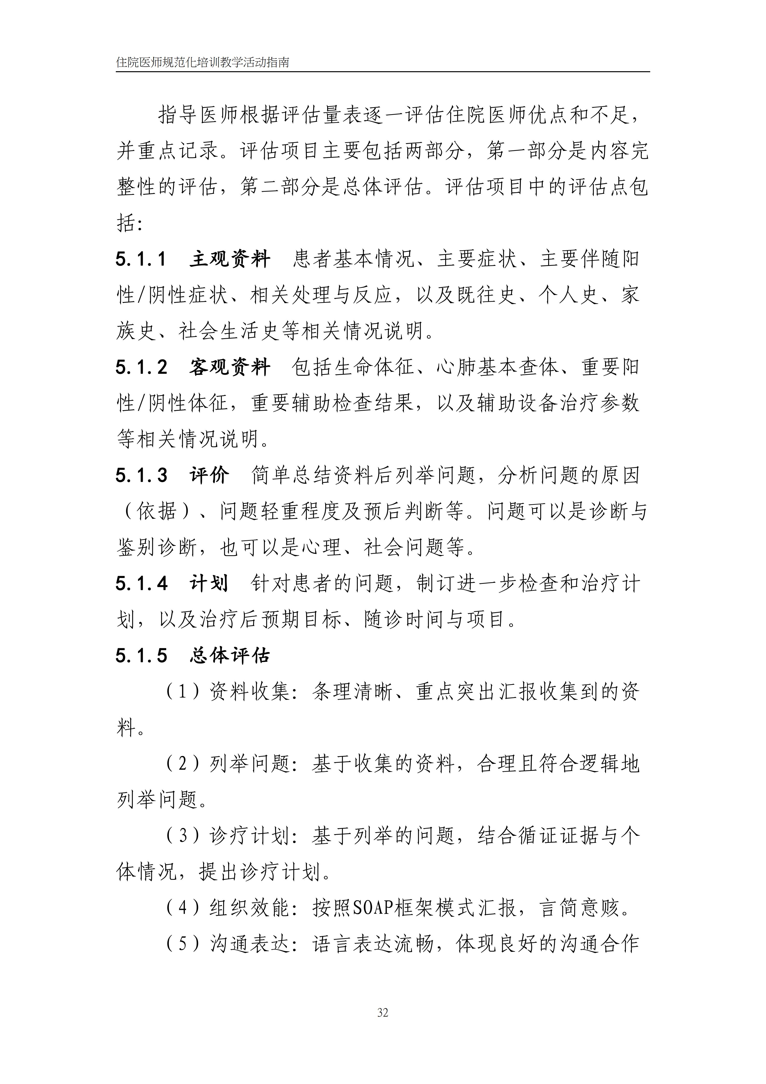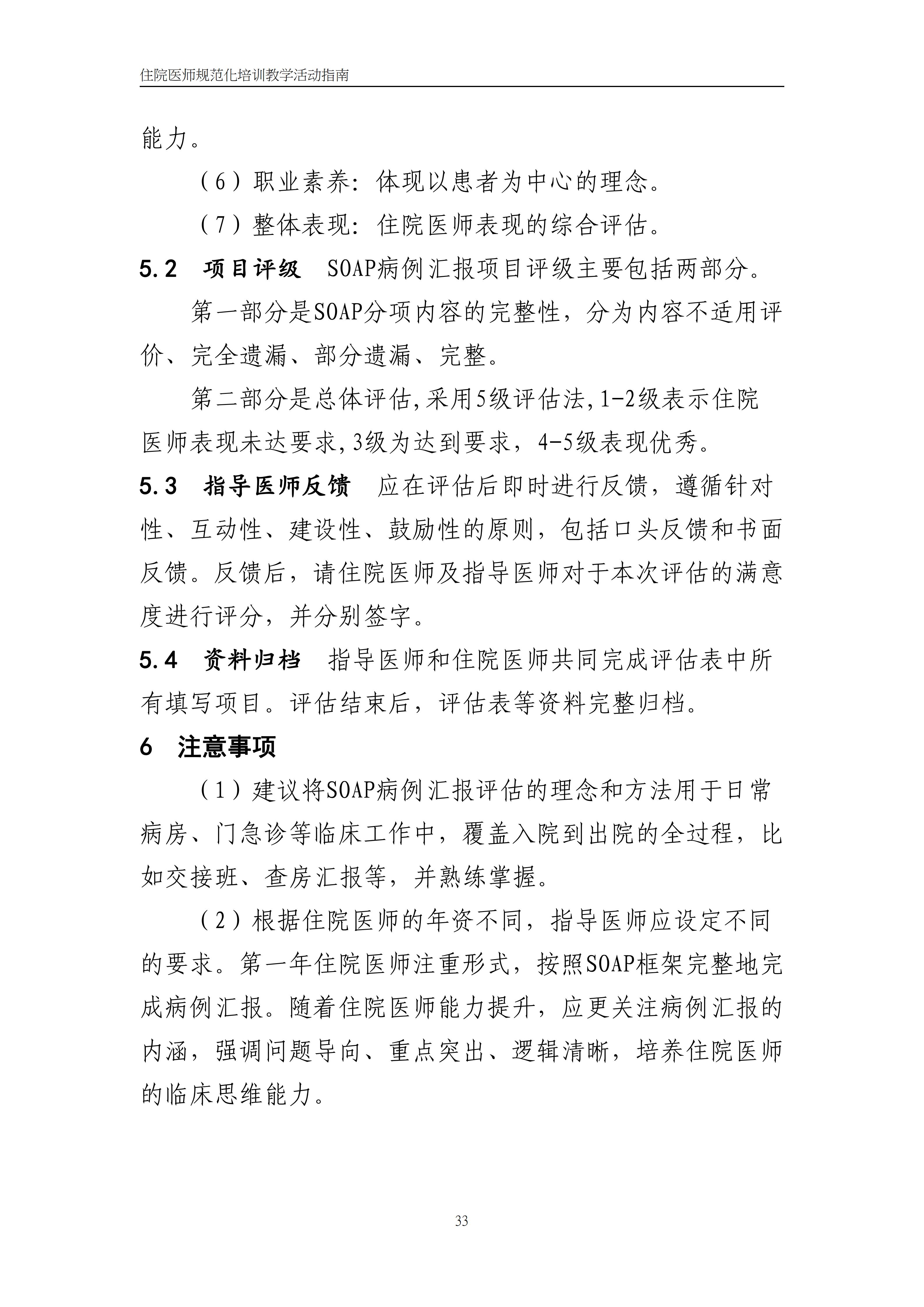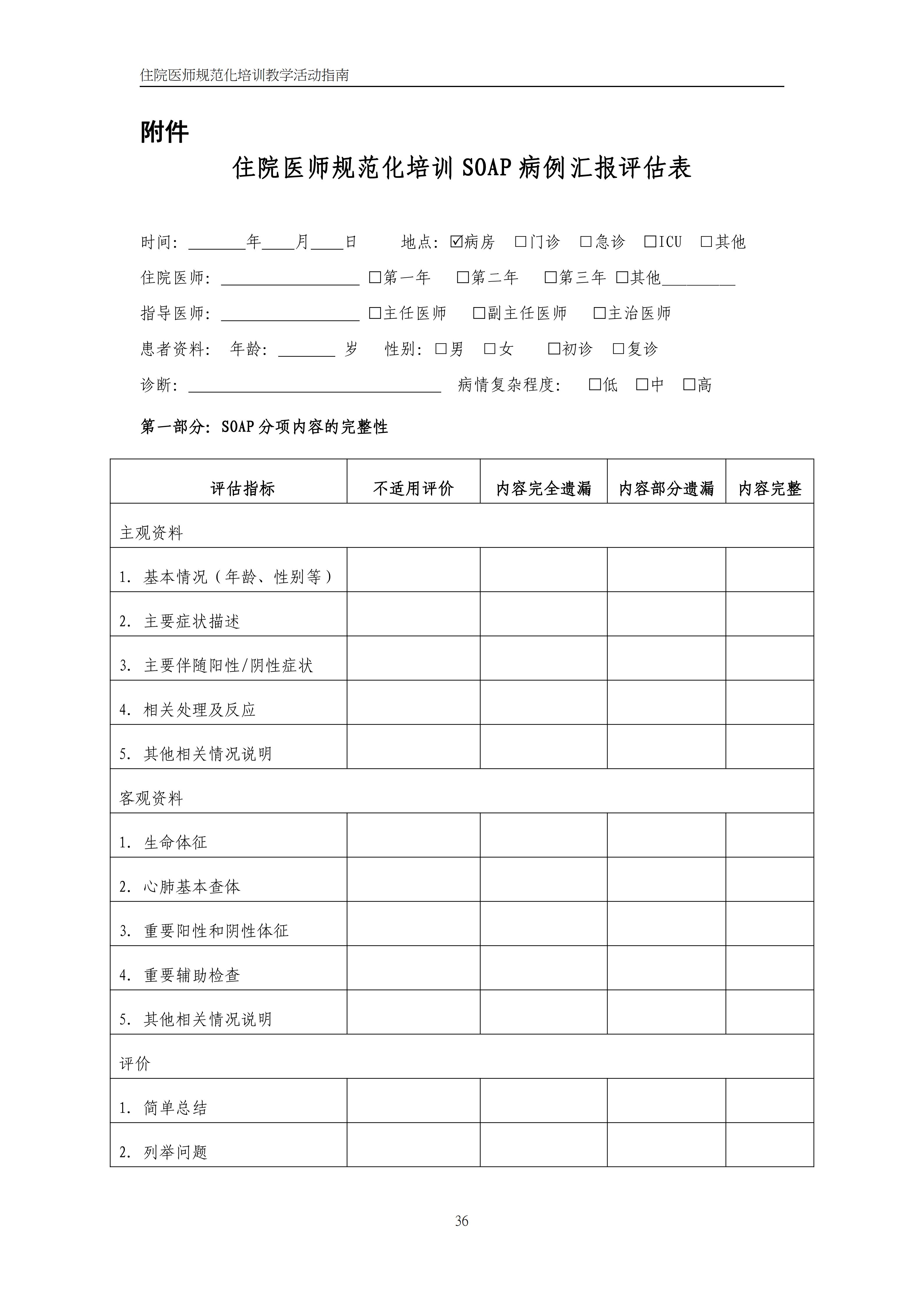 住院医师规范化培训SOAP病例汇报评估指南(2022年版)