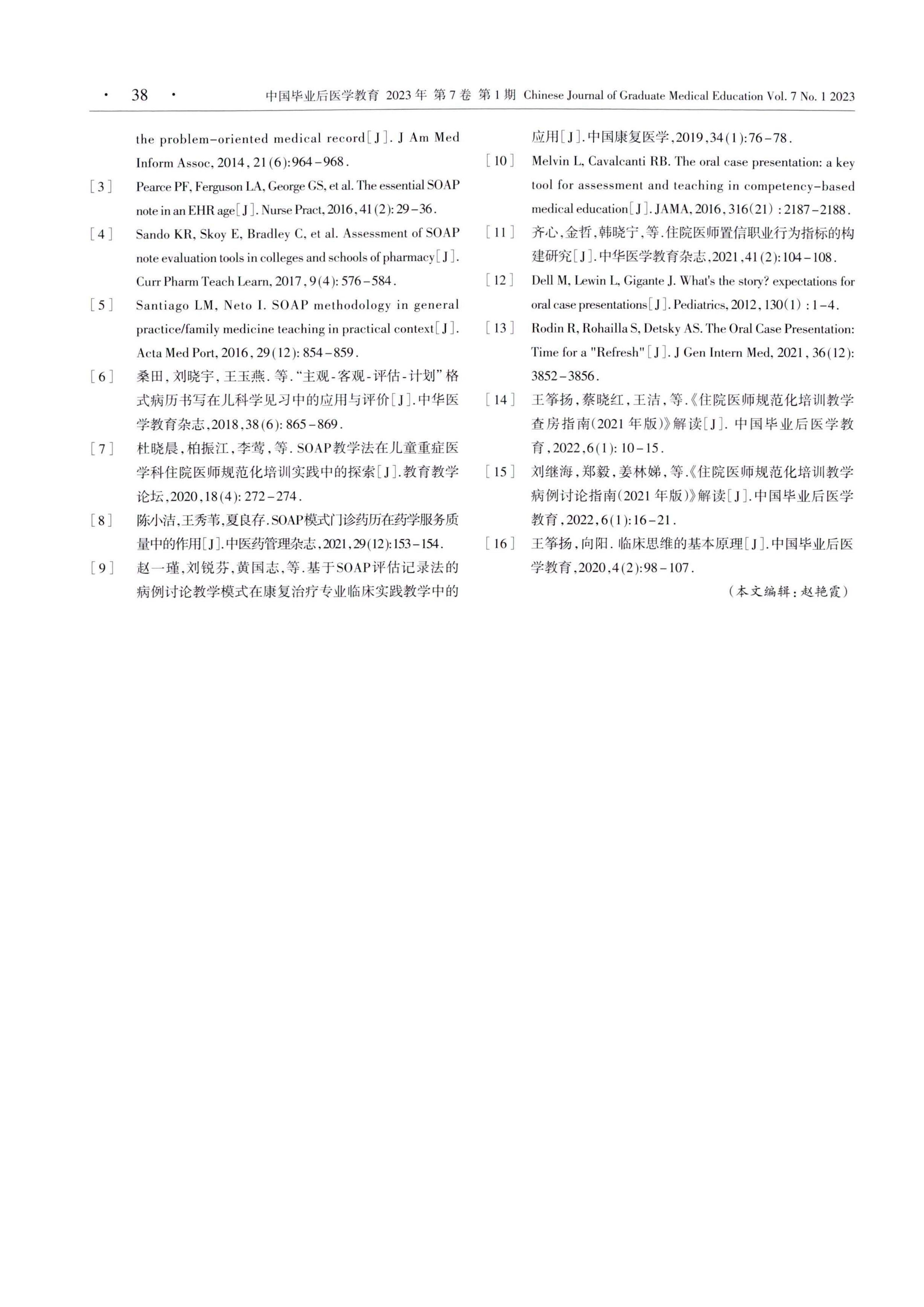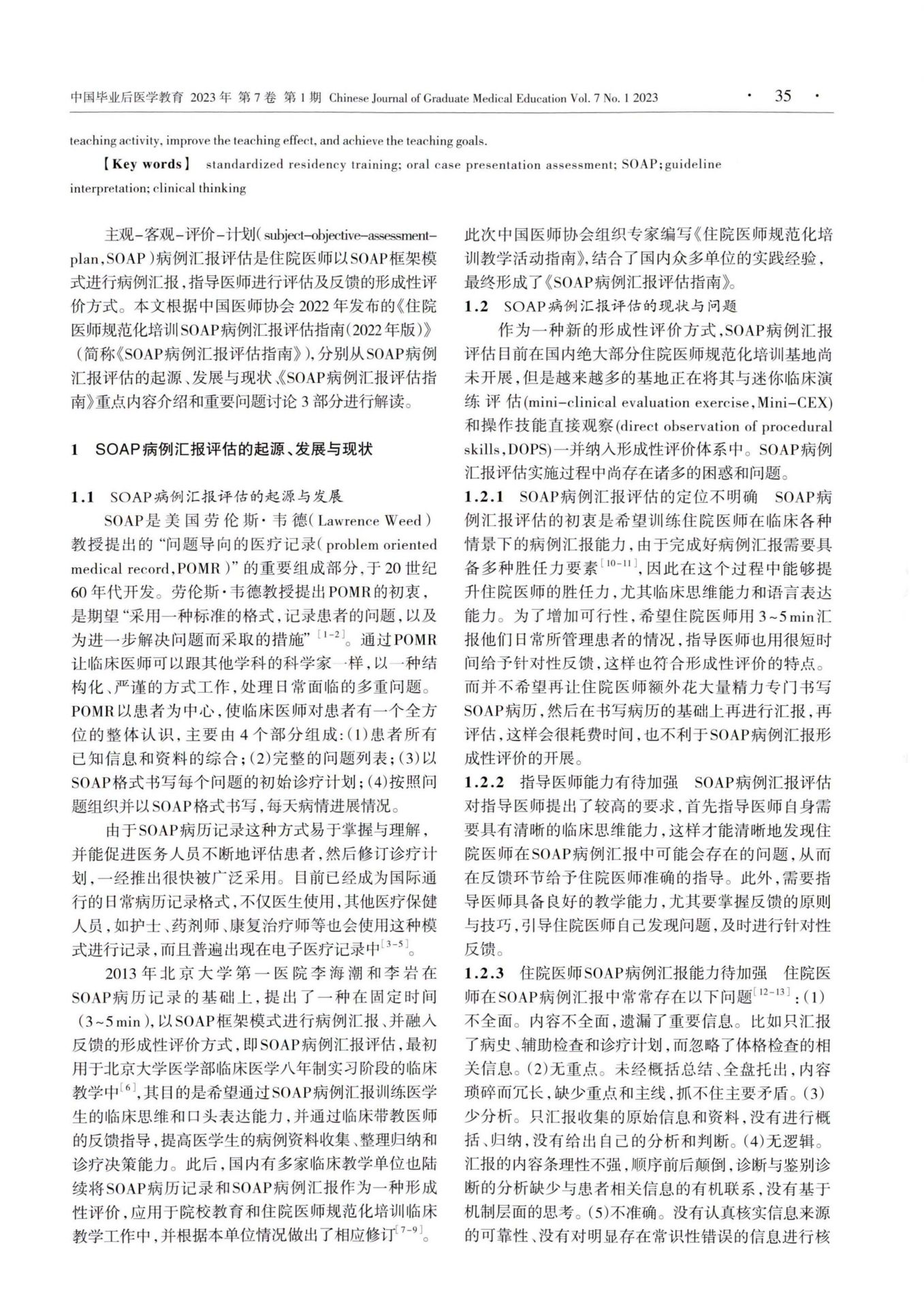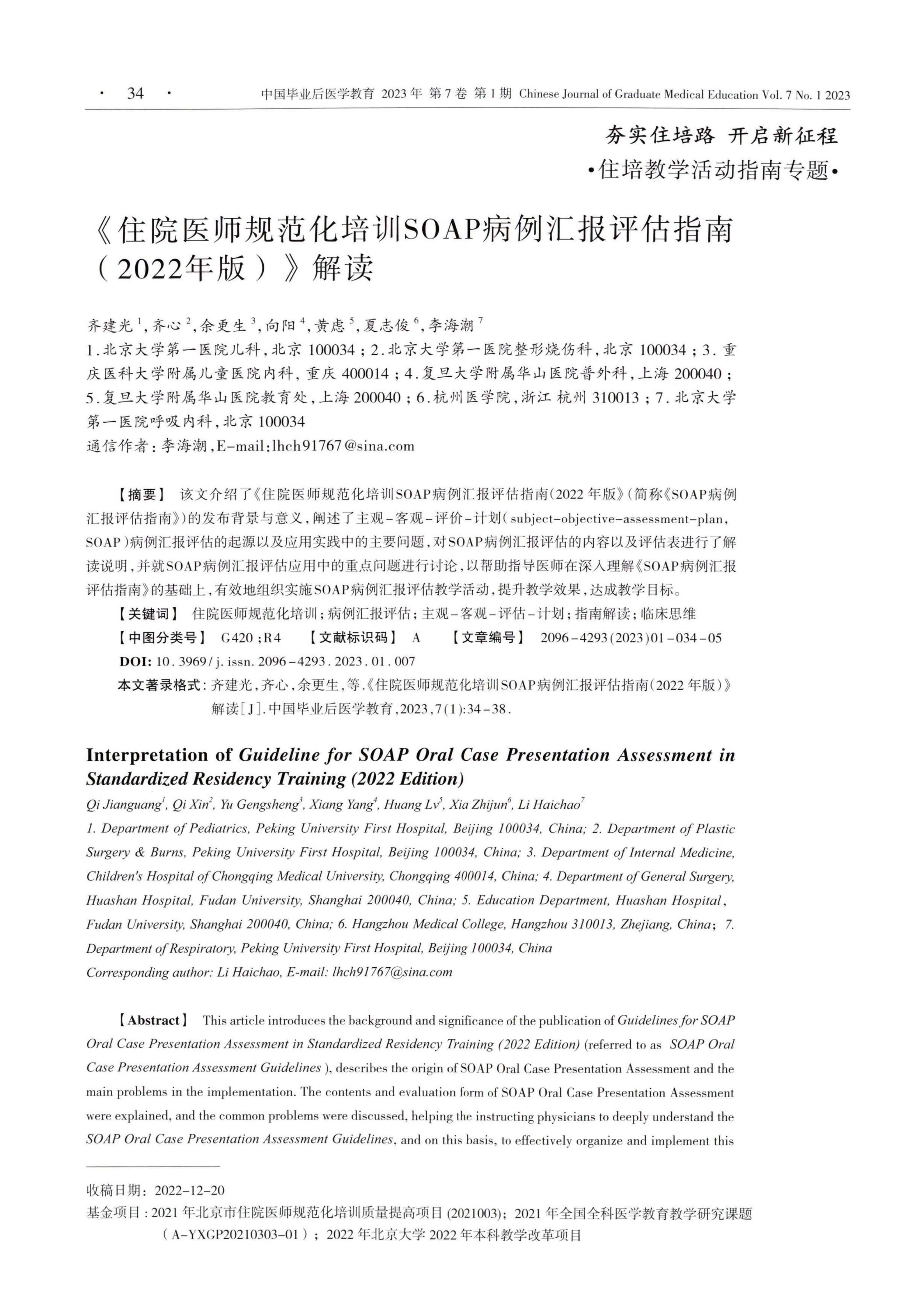 住院医师规范化培训SOAP病例汇报评估指南(2022年版)