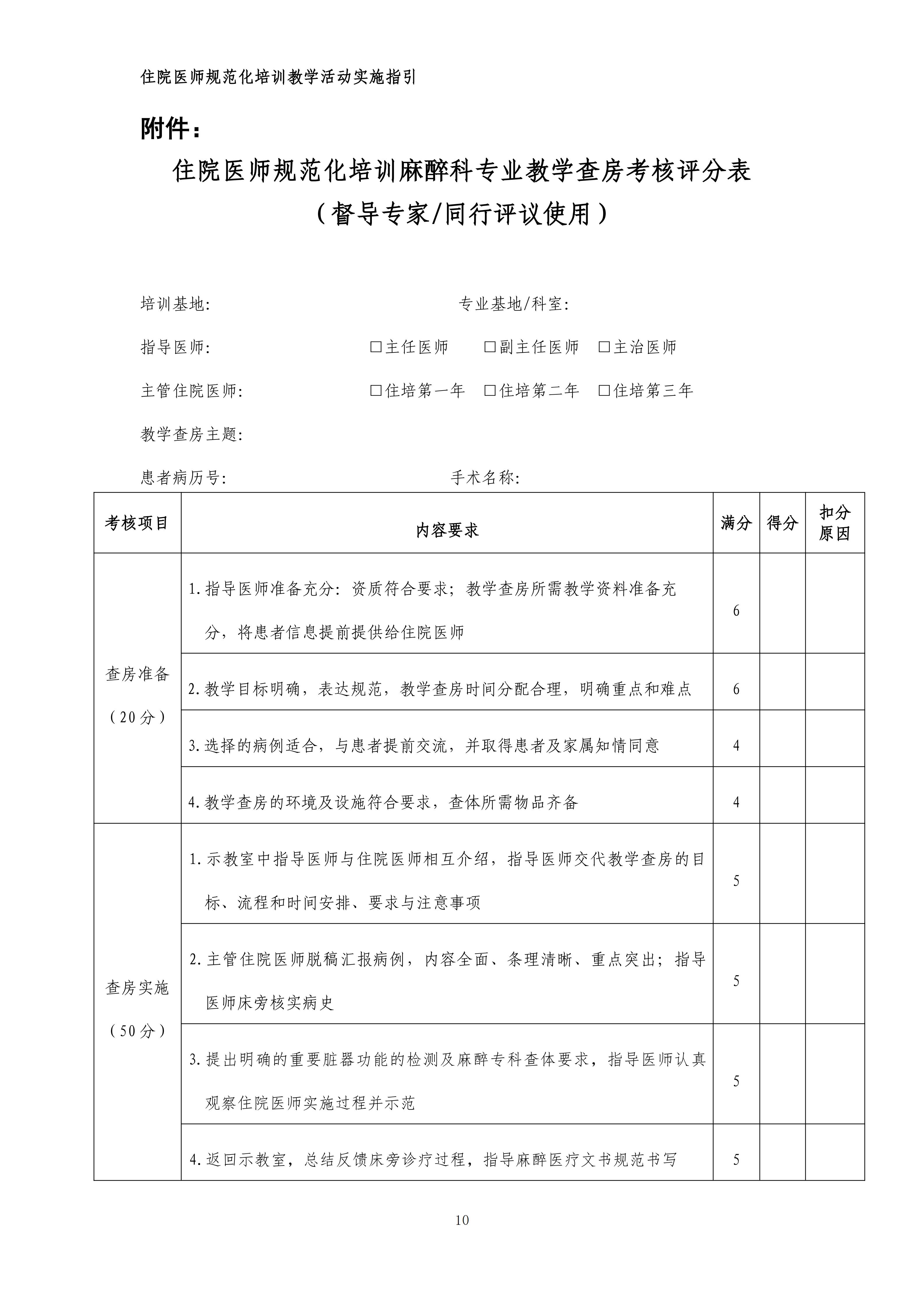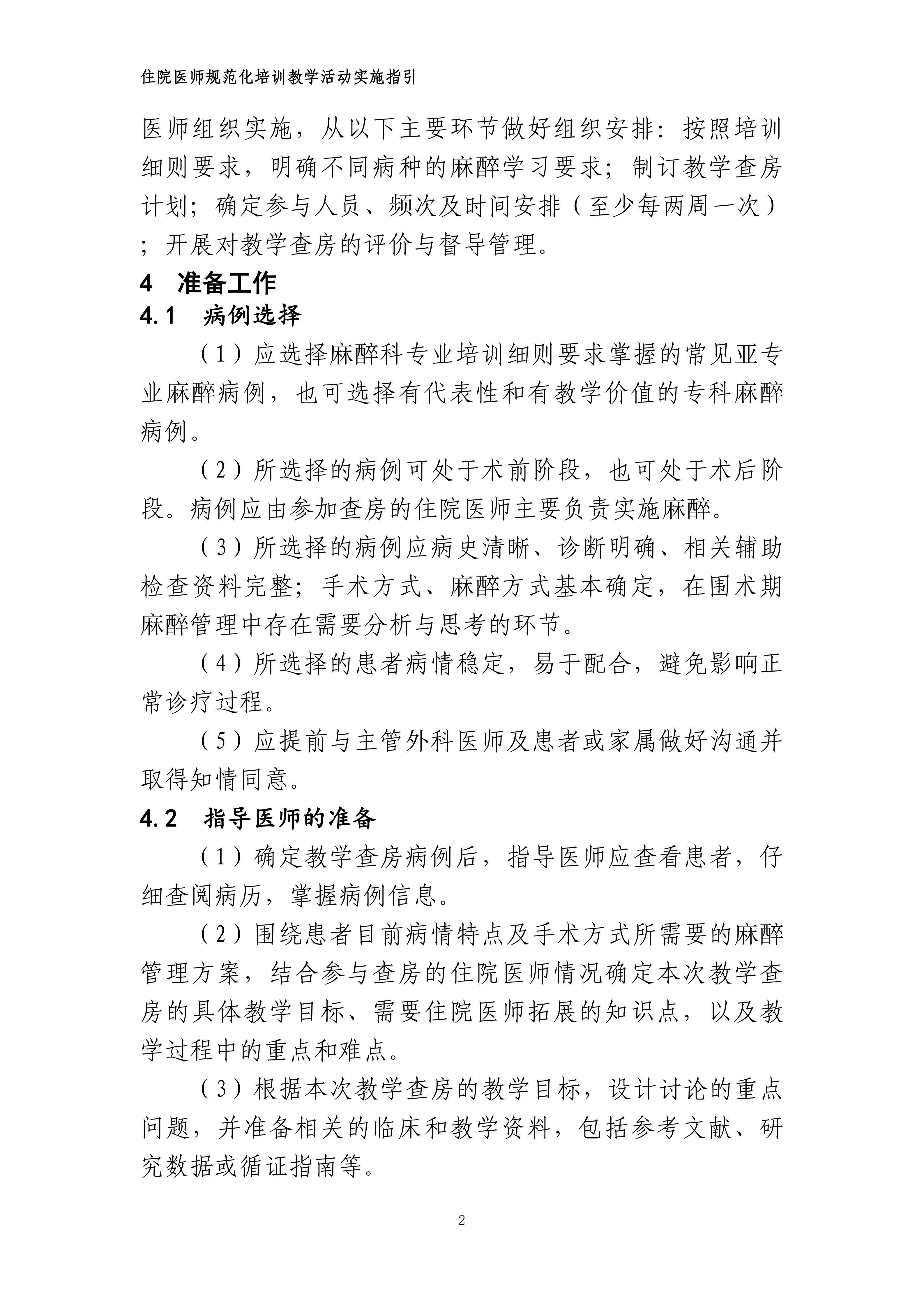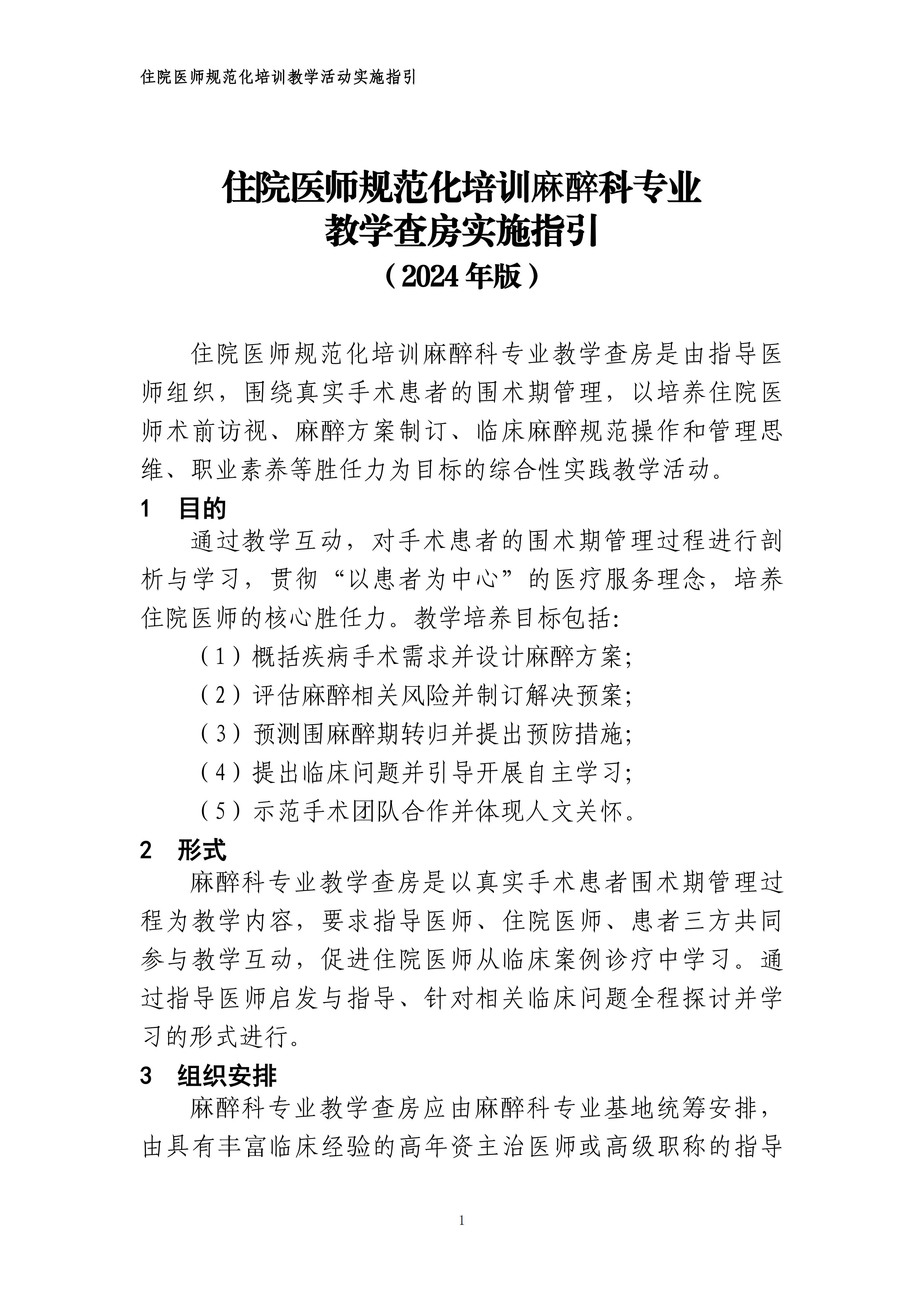 住院医师规范化培训麻醉科专业教学查房实施指引(2024年版)