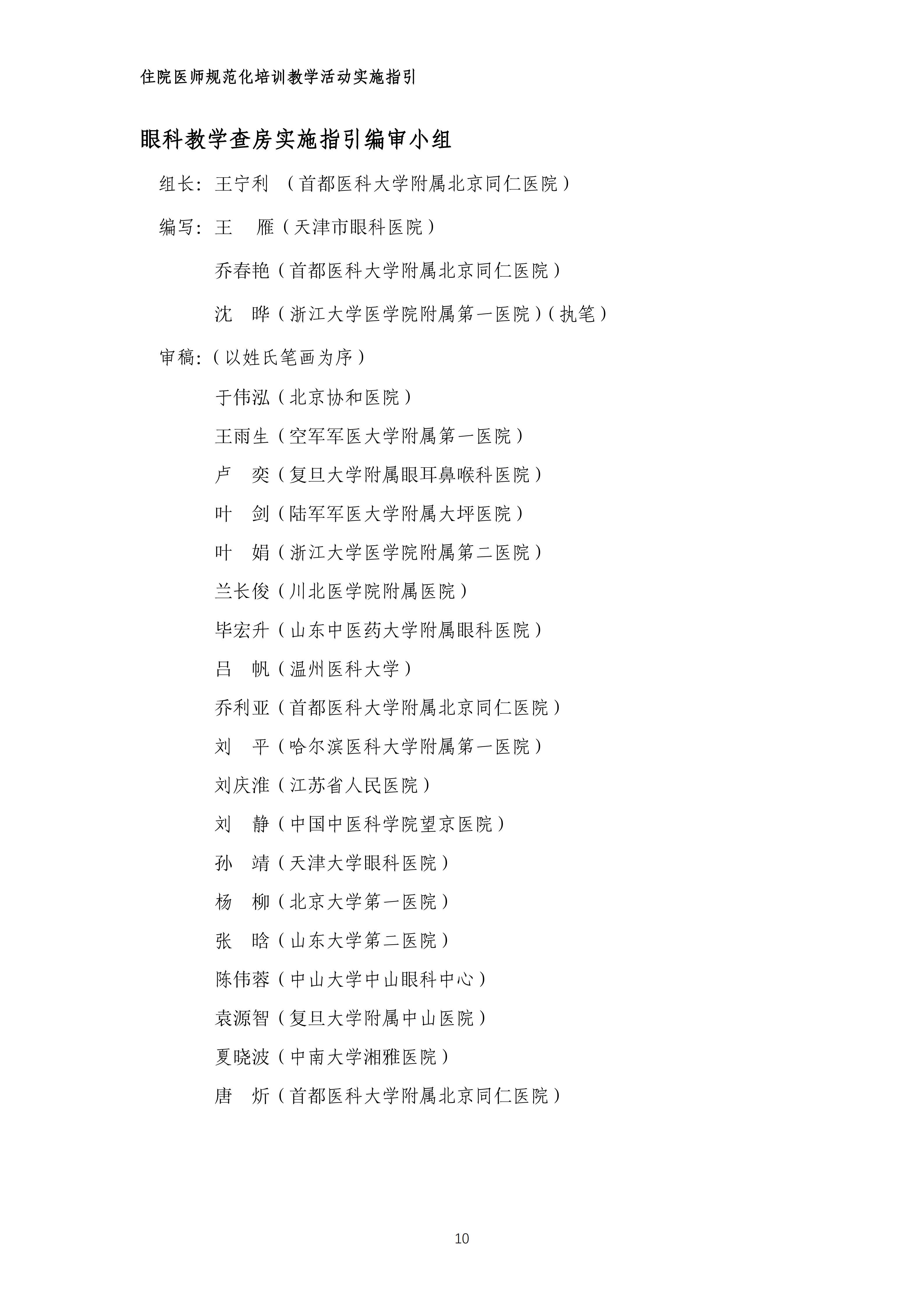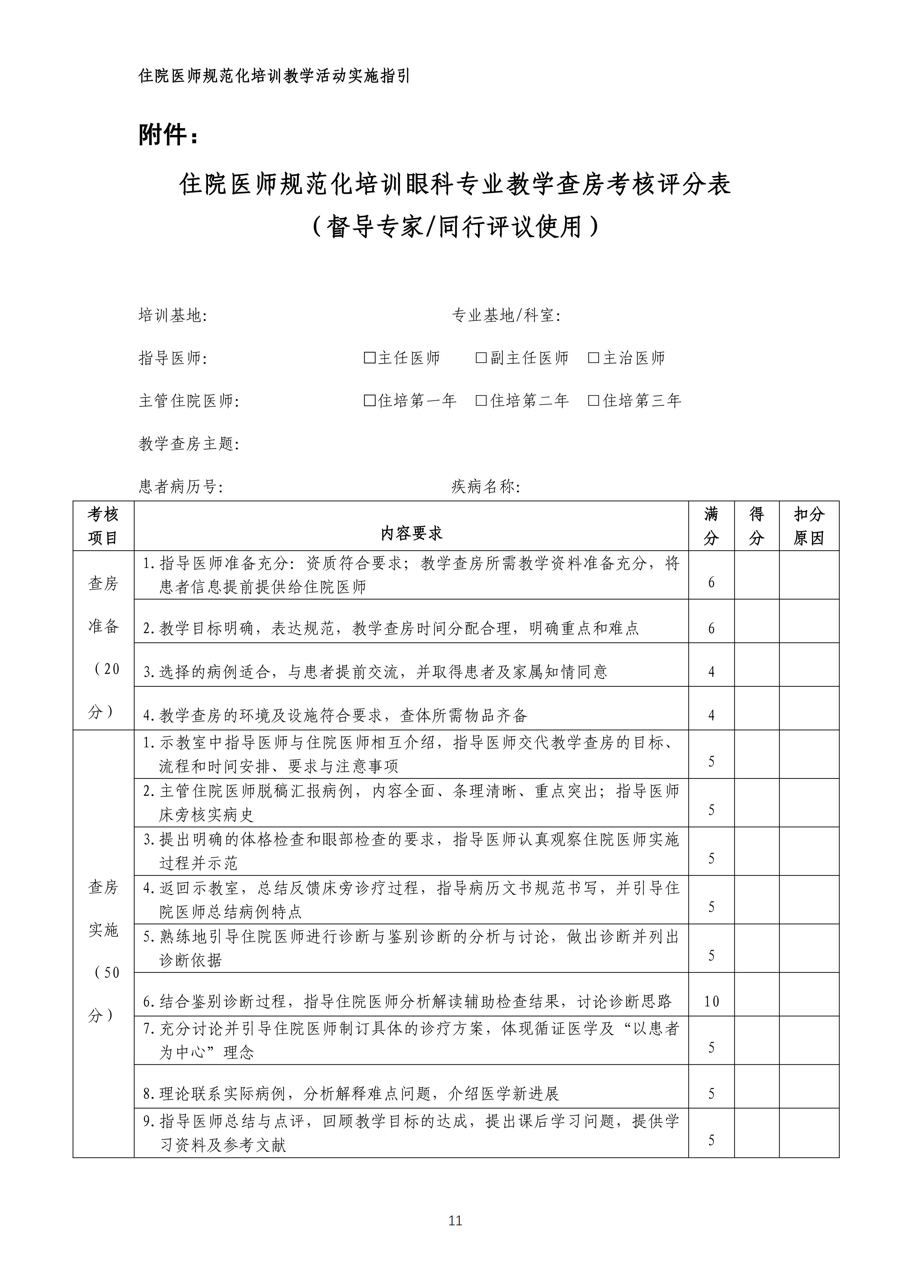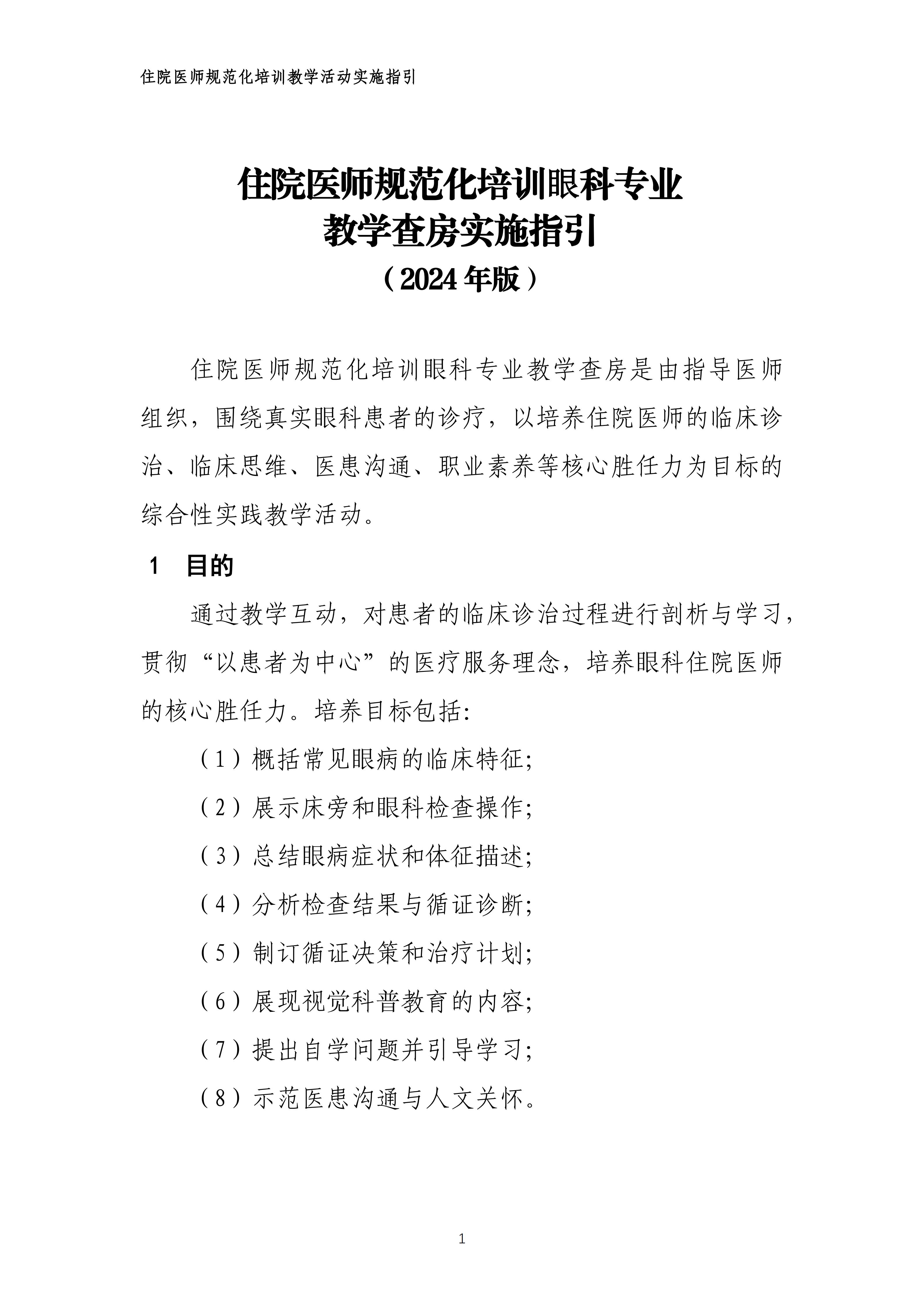 住院医师规范化培训眼科专业教学查房实施指引(2024年版)