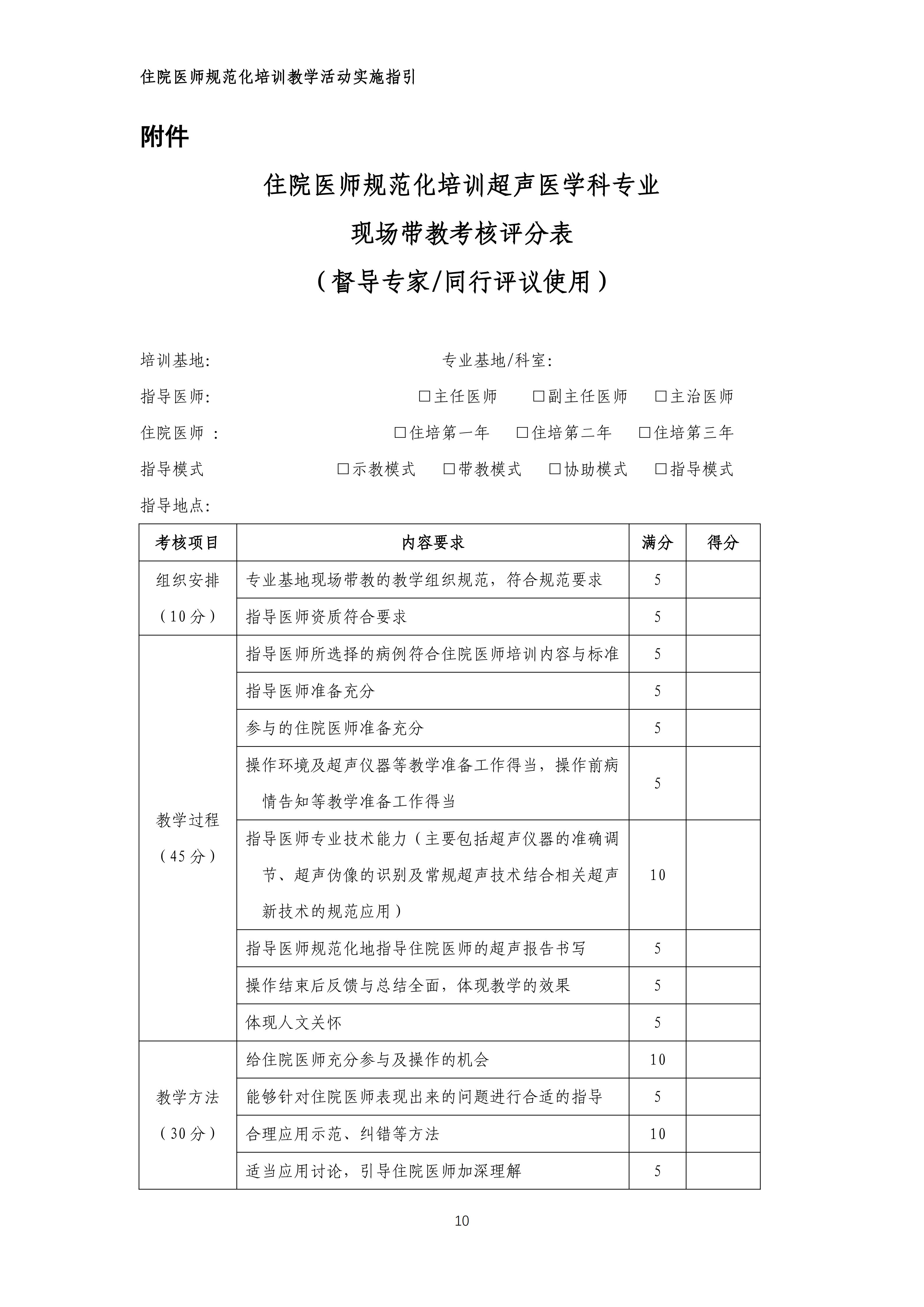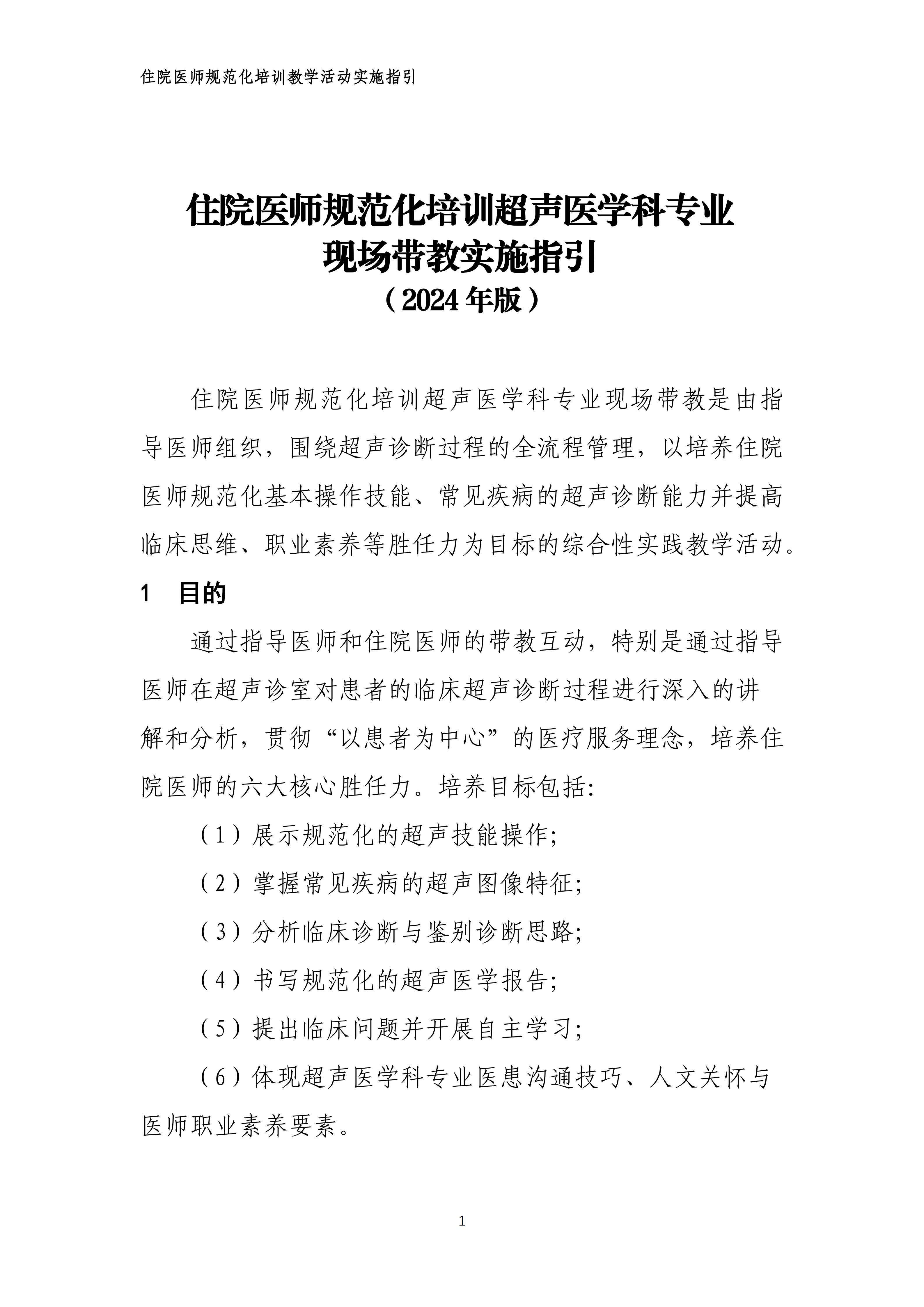 住院医师规范化培训超声医学科专业现场带教实施指引(2024年版)