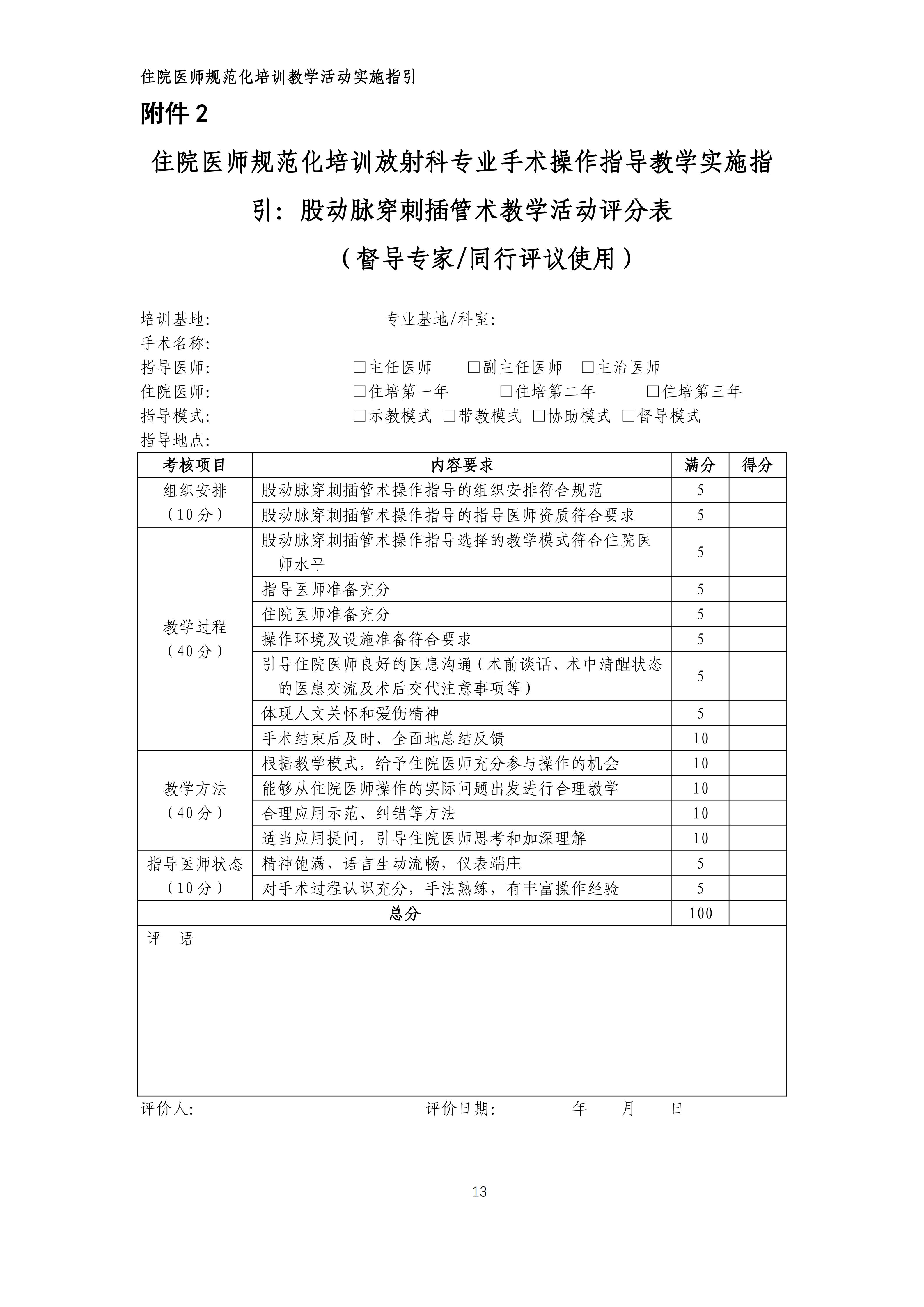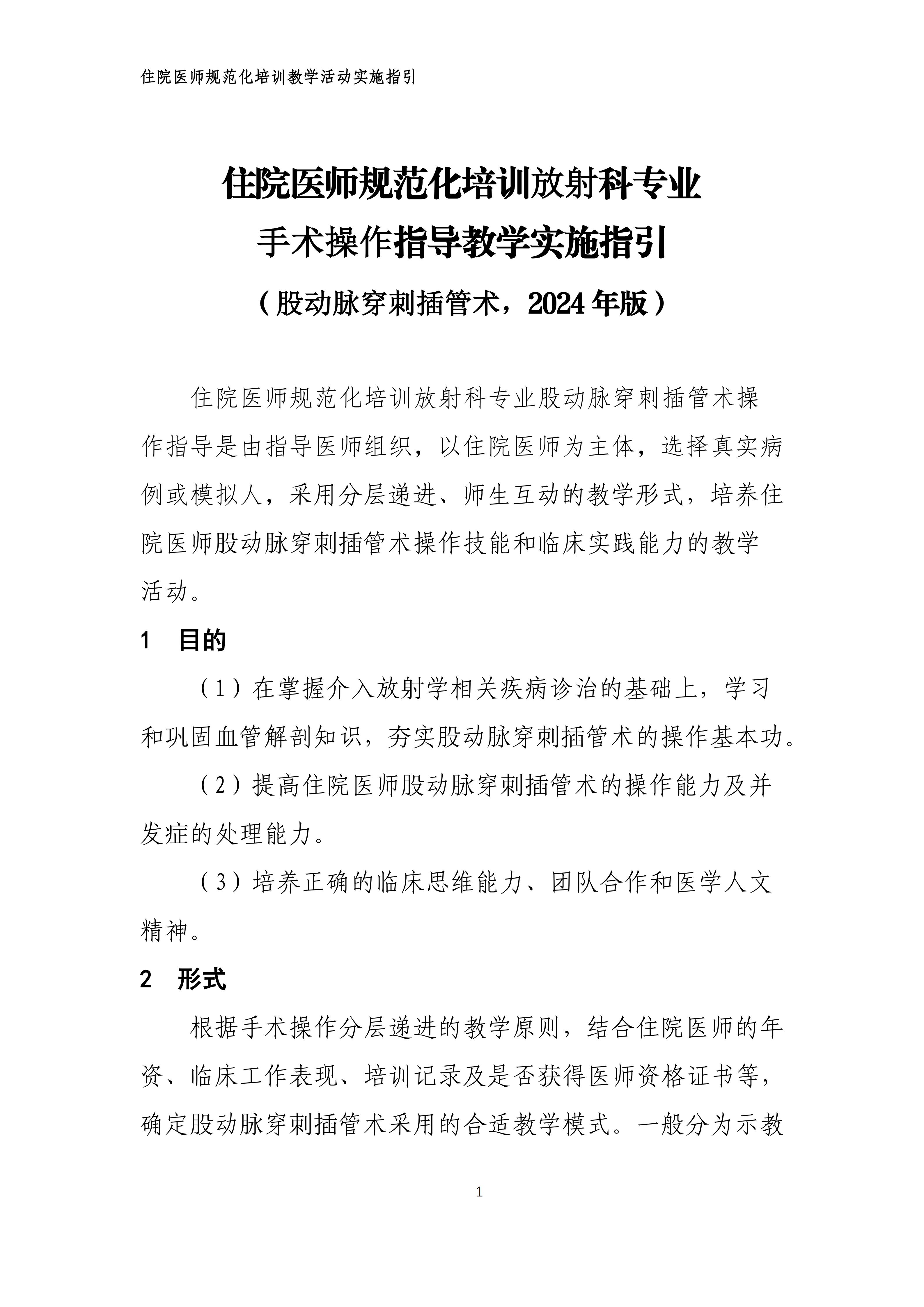住院医师规范化培训放射科专业手术操作指导教学实施指引(股动脉穿刺插管术,2024年版)